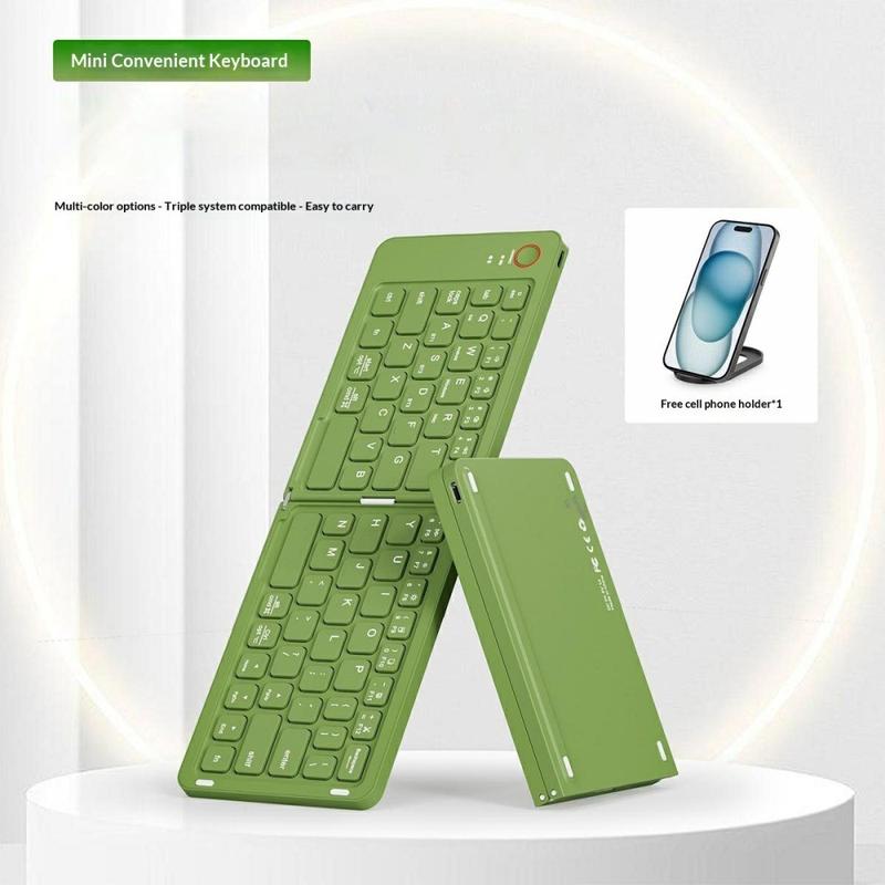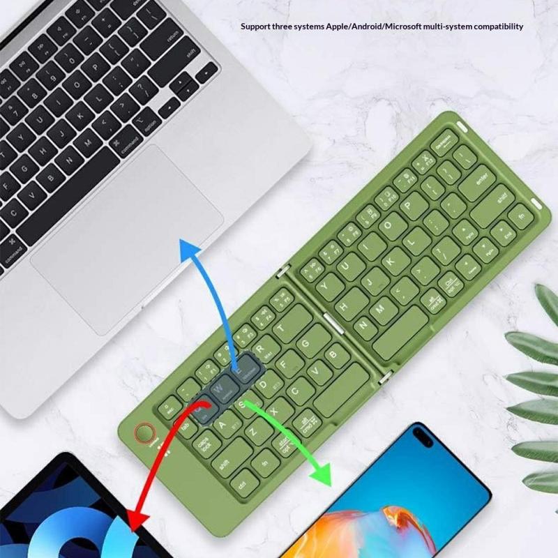 Det magnetiska, hopfällbara trådlösa tangentbordet B023 med 68 tangenter är utformat för personer som arbetar och skriver på resande fot. Tack vare sin smarta magnetiska dubbla hopfällbara design kan tangentbordet fällas ihop till en ultratunn, kompakt storlek som enkelt får plats i en väska eller till och med en stor ficka. Med bred Bluetooth-kompatibilitet för telefoner, surfplattor och bärbara datorer förvandlar det vilken plats som helst till en produktiv arbetsplats på några sekunder.