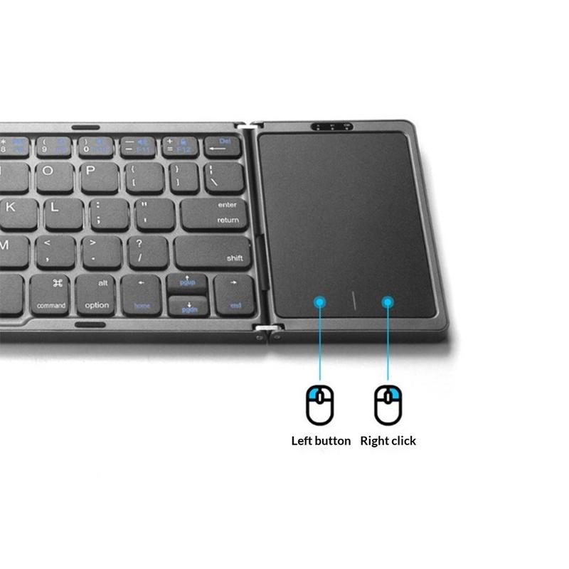 Arbeta bekvämt var som helst med det hopfällbara trådlösa tangentbordet B089 med pekplatta. Den smidiga, hopfällbara designen gör att det enkelt får plats i en laptopfodral, medan den inbyggda pekplattan möjliggör smidig navigering utan separat mus. Tangentbordet är utformat för telefoner, surfplattor och bärbara datorer och är perfekt för resor, distansarbete och daglig produktivitet.