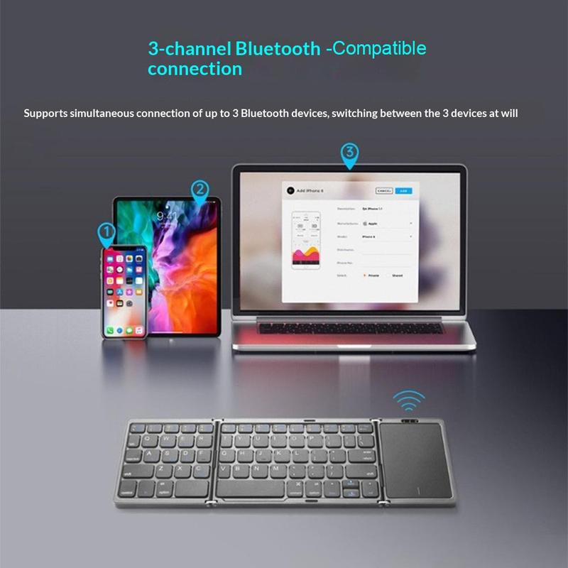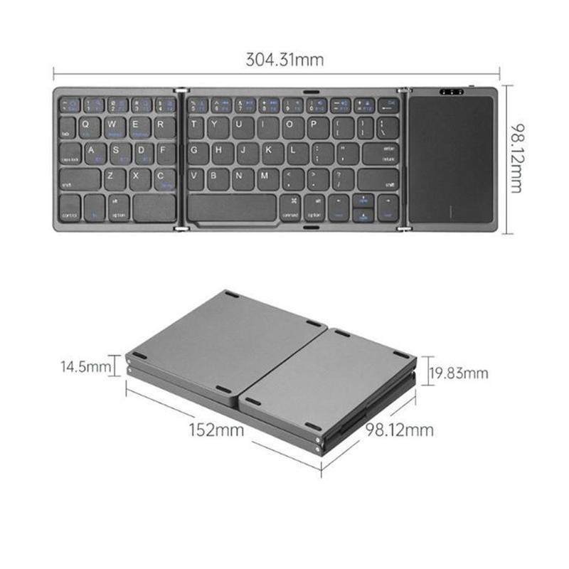 B089 Fällbart trådlöst tangentbord med pekplatta (81 tangenter) - QWERTY, Bluetooth-kompatibelt med flera enheter, USB-C-uppladdningsbart, tysta tangenter