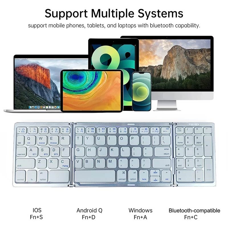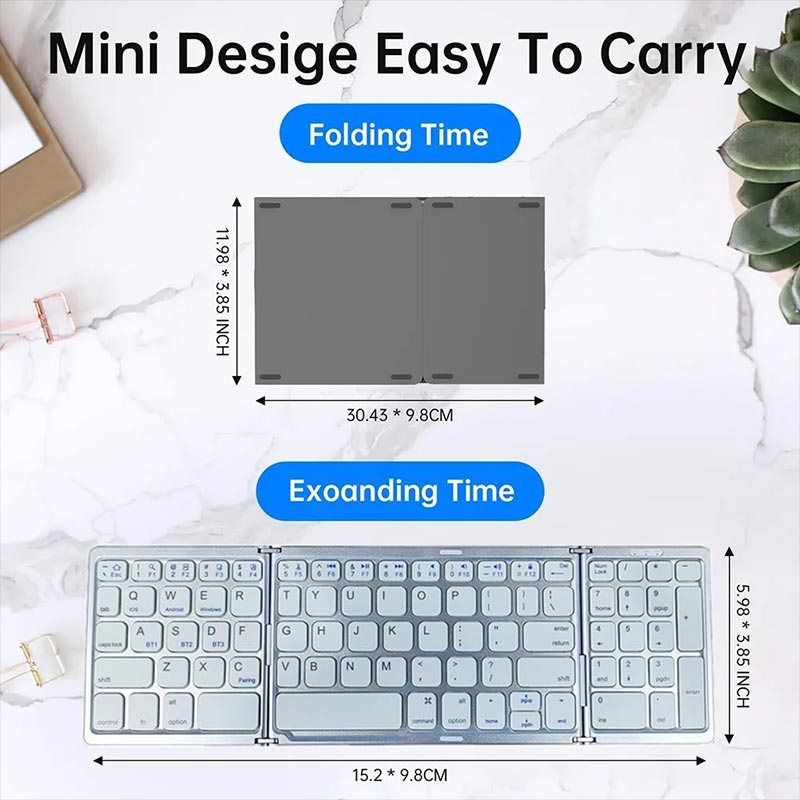 Arbeta bekvämare var du än befinner dig med det bärbara, trefaldigt hopfällbara Bluetooth-tangentbordet B089. Detta kompakta trådlösa tangentbord är utformat för flexibel vardagsanvändning och fälls ut till ett praktiskt tangentbord i full storlek med ett särskilt sifferfält, för att sedan fällas ihop till ett mindre, resevänligt format när det inte används. Det är ett utmärkt val för mobilt arbete, studier, affärsresor, pendling och hemmakontor.