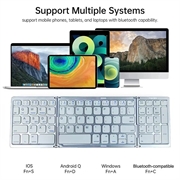 Den smarta trefaldiga designen gör det enkelt att bära med sig i en väska, ryggsäck eller laptopfodral, medan den magnetiska stängningen hjälper till att hålla det säkert ihopfällt under transport. Med stöd för upp till tre Bluetooth-enheter kan du smidigt växla mellan din telefon, surfplatta och bärbara dator med hjälp av de dedikerade knapparna BT1, BT2 och BT3. Detta gör tangentbordet särskilt användbart för multitasking mellan olika enheter och operativsystem.