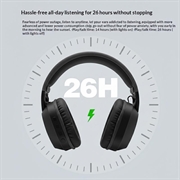 - Upp till 26 timmars uppspelning med RGB-belysningen avstängd, eller upp till 14 timmar med RGB påslagen