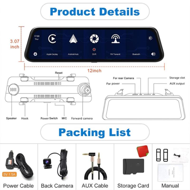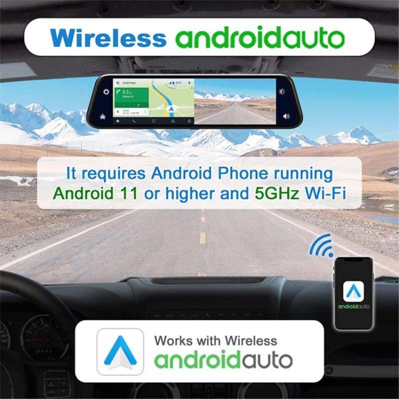 Bakspegel med pekskärm och dubbel bilkamera med GPS-navigering, Android Auto, CarPlay, Bluetooth, Mirror Link - 9"