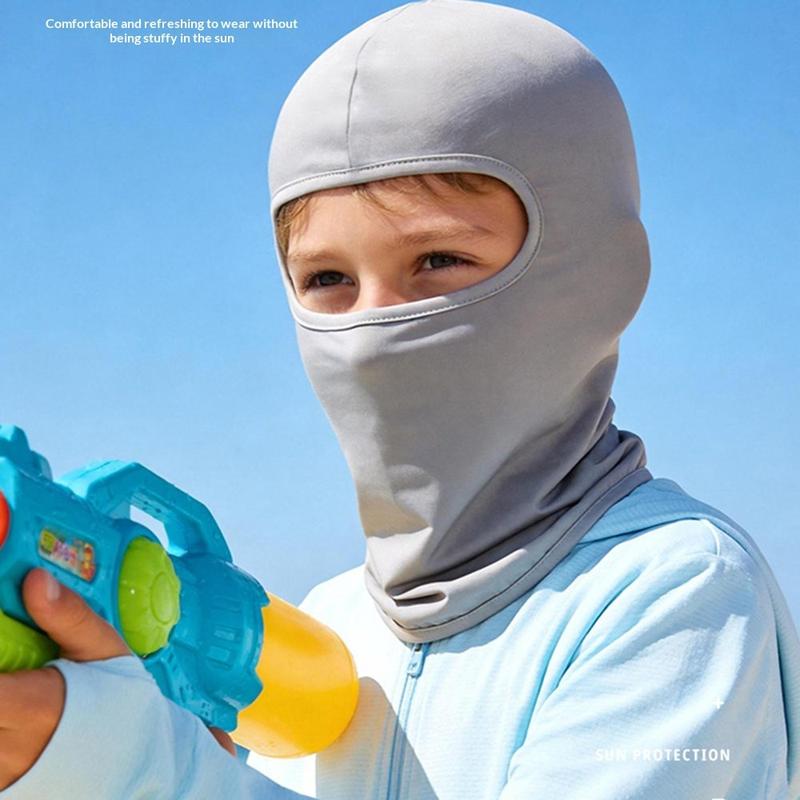 Skydda ditt barn under soliga utomhusaktiviteter med denna balaclava för barn. Den är tillverkad av mjukt is-silke och täcker hela huvudet och ansiktet på ett lätt sätt, samtidigt som den hjälper till att hålla huden svalare och ger bättre komfort i varmt väder.