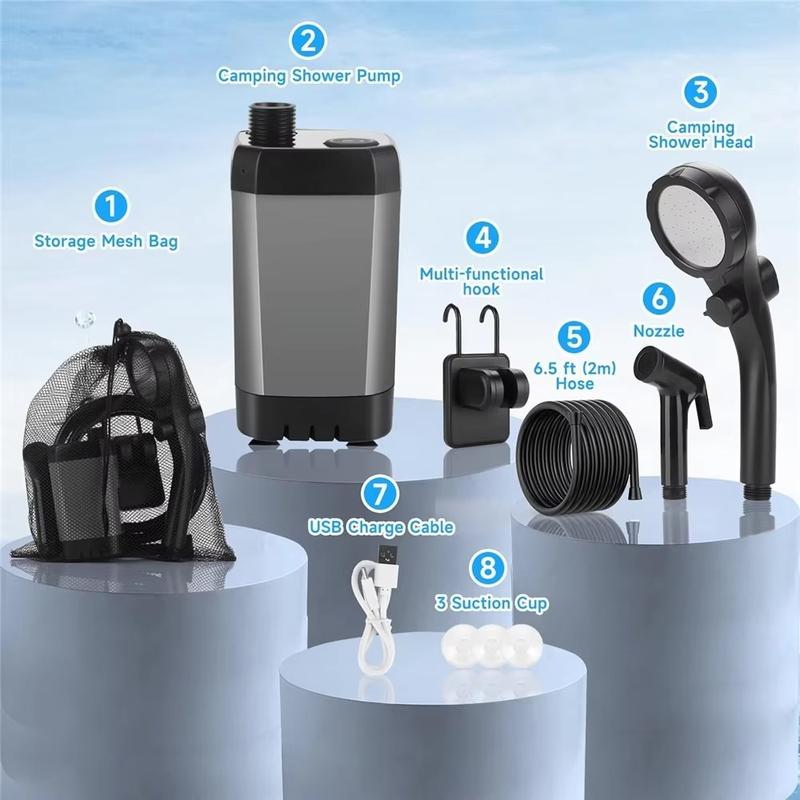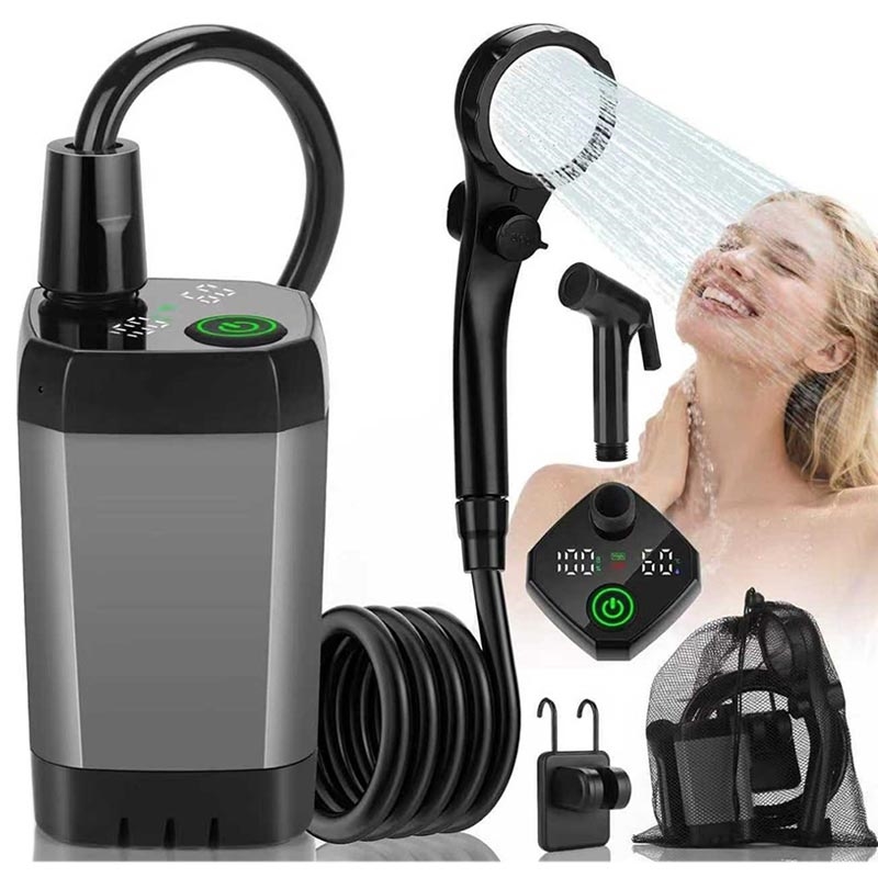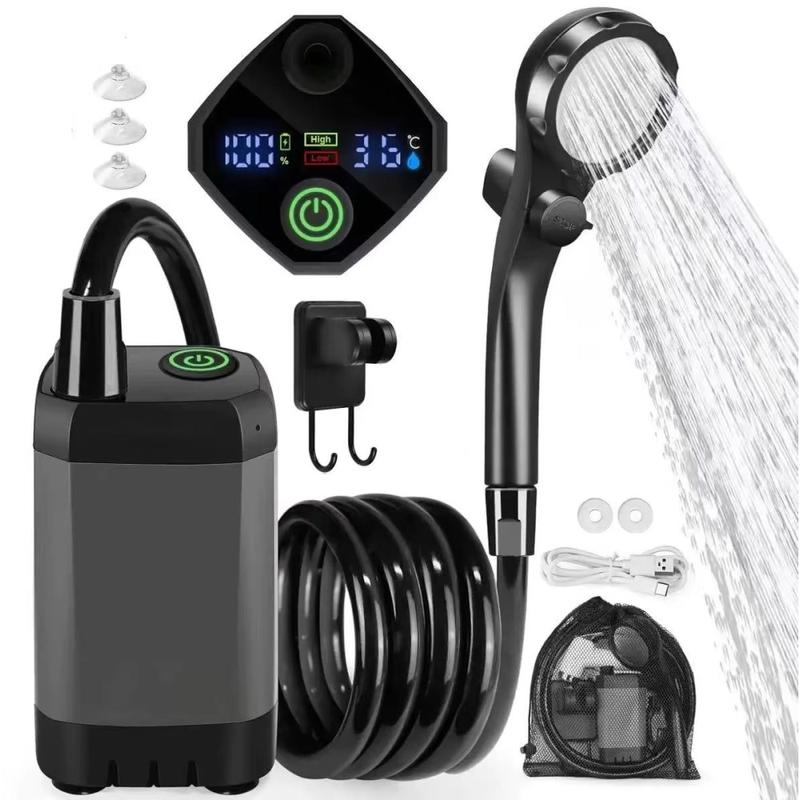 Denna bärbara elektriska duschpump är utformad för att göra tvätt utomhus enklare, bekvämare och mer flexibel, oavsett vart du beger dig. Med ett inbyggt batteri på 6000mAh, vattentätning enligt IPX7 och en smart digital display är den ett praktiskt val för camping, husbilsresor, strandutflykter, vandring, tvätt av husdjur och utomhusstädning. Den sladdlösa konstruktionen och det kompletta tillbehörssetet gör att du kan njuta av en smidigare duschupplevelse utan att behöva vara beroende av en fast vattenkälla eller ett eluttag.