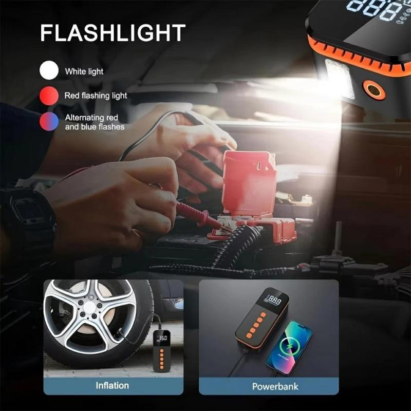 - Vägassistans vid nödsituationer: Pumpa upp däcken snabbt när du är strandsatt.