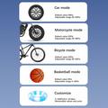 - Mångsidiga förinställda lägen: Välj mellan bil-, motorcykel-, cykel- eller bolläge, plus manuellt läge.