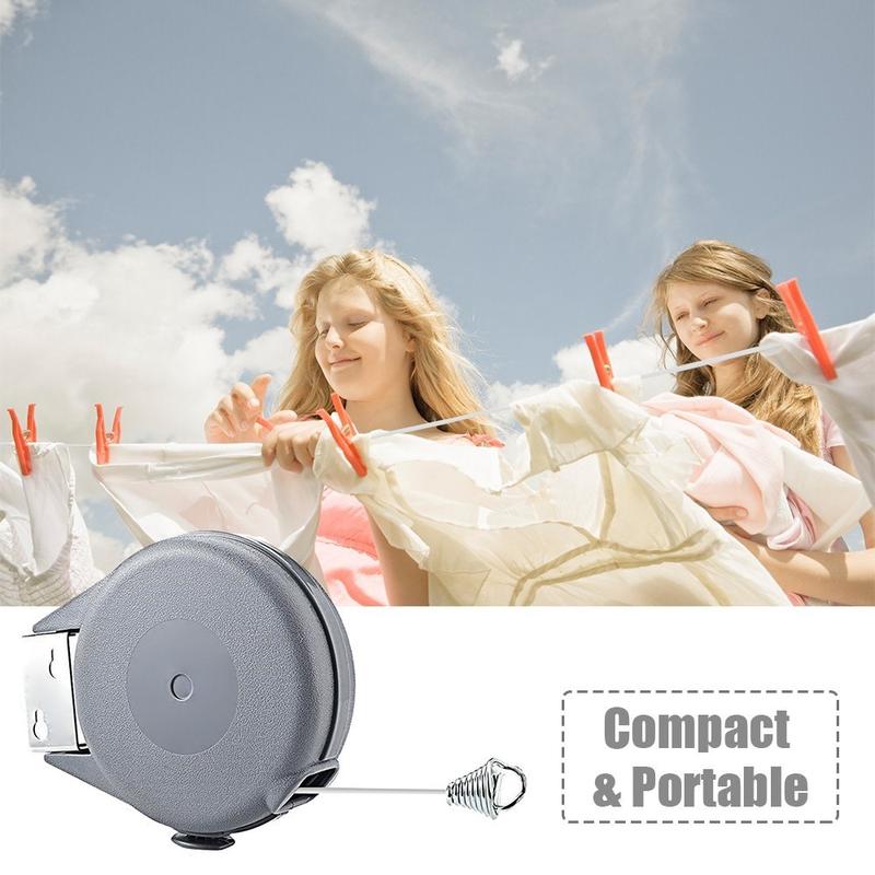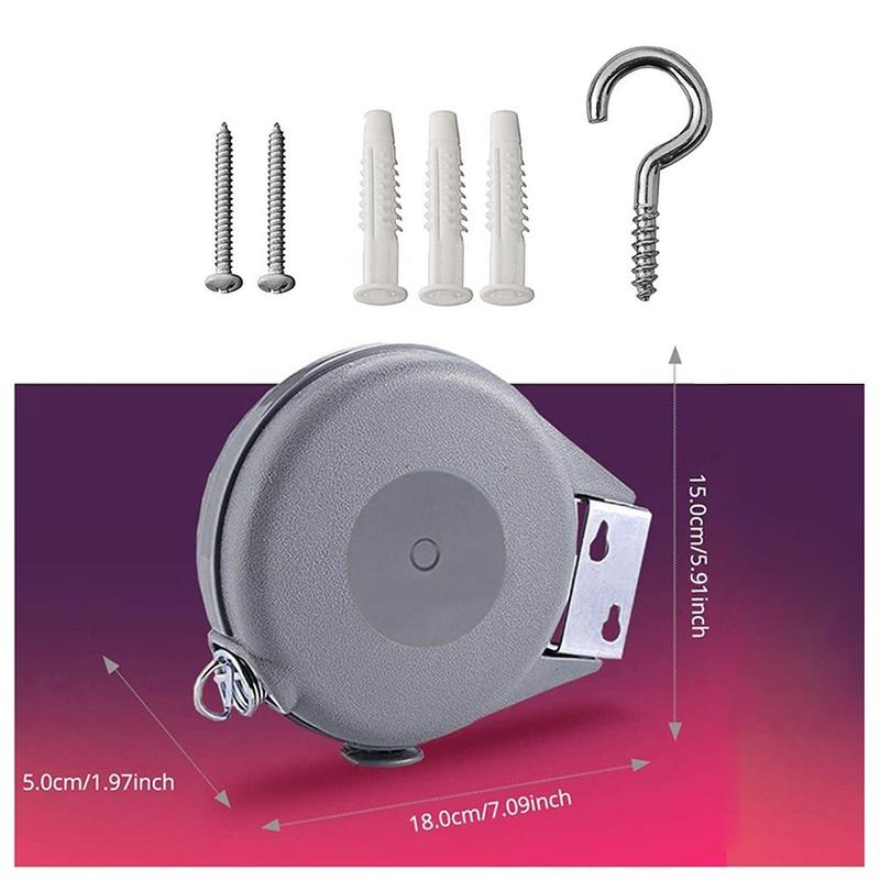 Den här bärbara uppfällbara klädstrecket är en bekväm, flexibel och platsbesparande lösning för att torka kläder hemma eller på språng. Den är utformad med ett tåligt ABS-skal och ett kraftigt PVC-rep och sträcker sig upp till 15meter, vilket ger gott om hängutrymme utan att ta upp plats när den inte används.