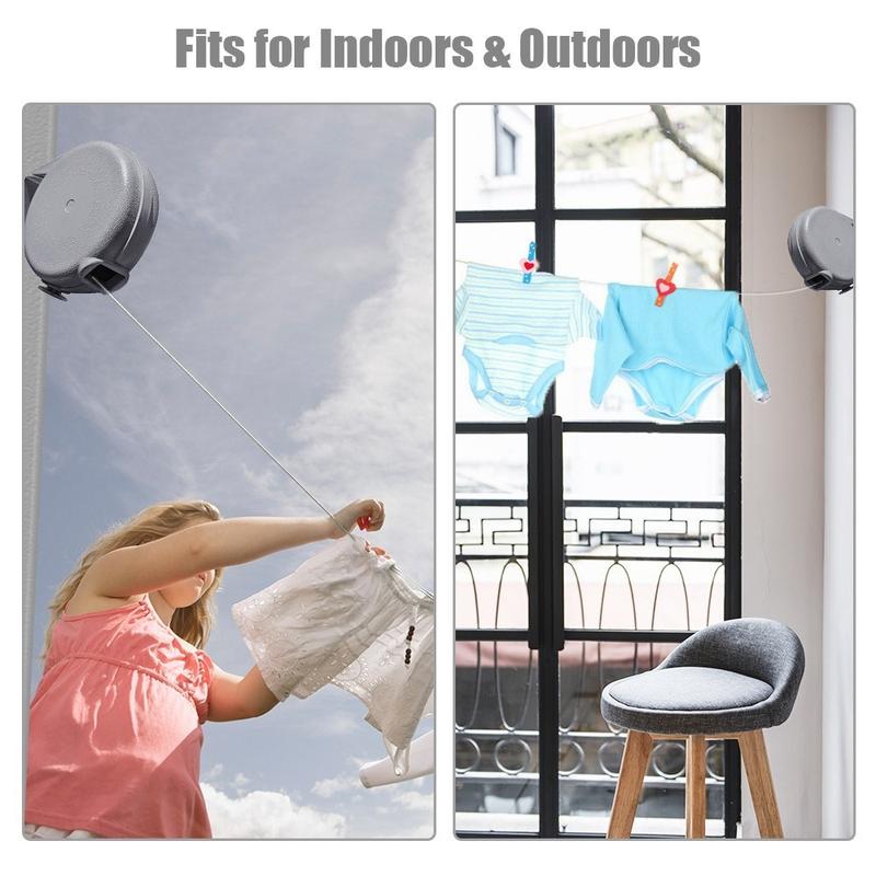 Dra ut klädstrecket när det behövs och dra tillbaka det i sitt kompakta skal när du är klar. Detta håller ditt utrymme snyggt och förhindrar trassel.
