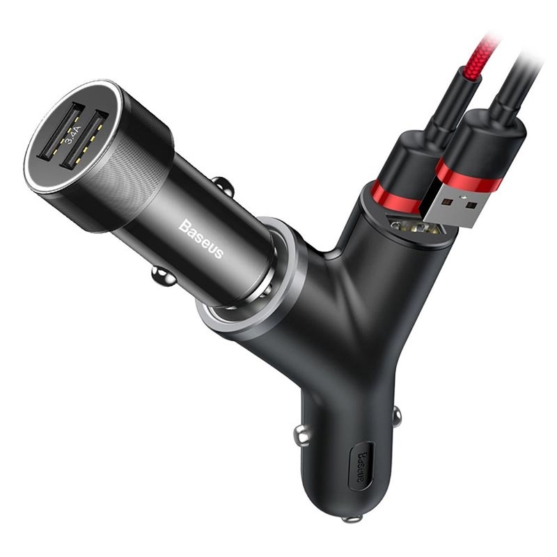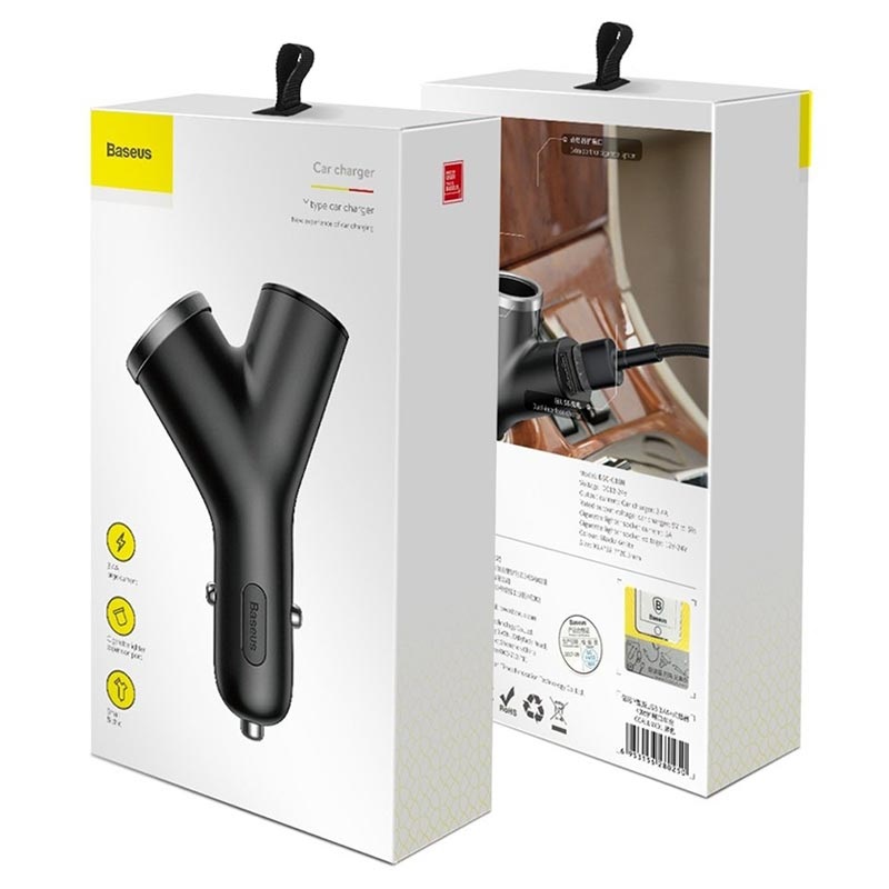 Baseus BSC-C16N Billaddare med Cigarettändaruttag - dubbel USB Typ-A, 3.4A, 12-24V