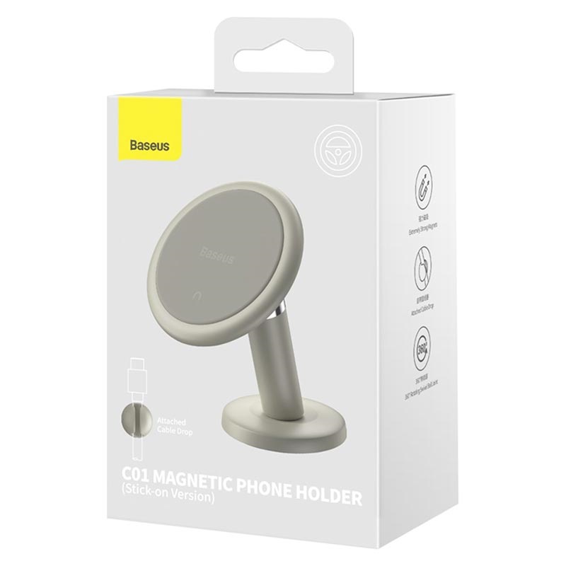 Baseus C01 Universell Stick-on Magnetisk Bilhållare med Kabelklämma - 53mm x 76mm