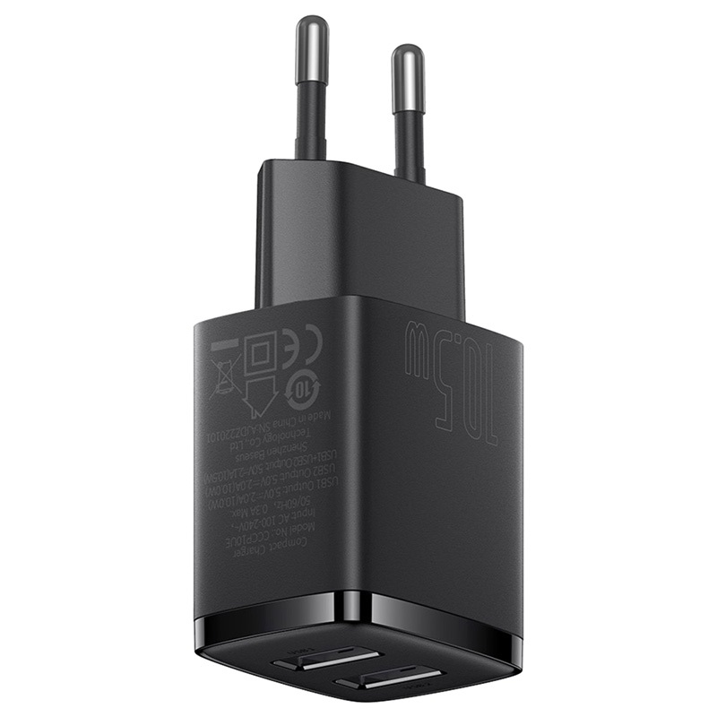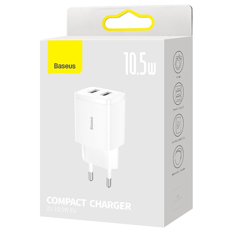 Baseus Compact Väggladdare med 2 USB-Portar - 10.5W - EU-Kontakt