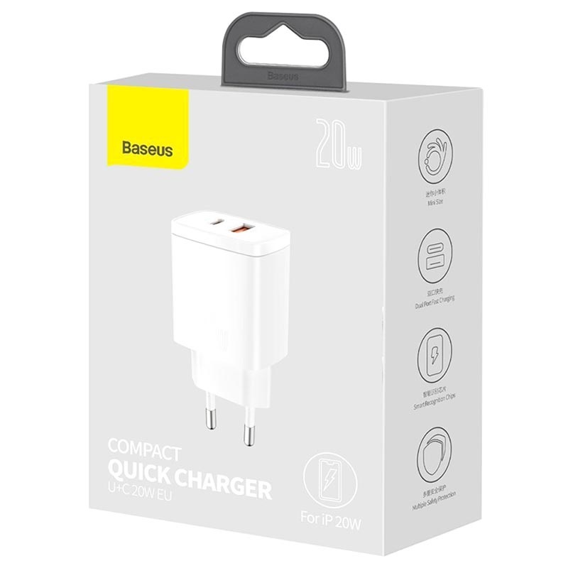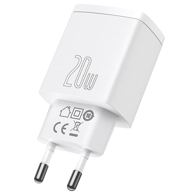 Baseus Compact Väggladdare 20W - USB-C, USB-A, QC3.0, PD3.0, Apple 2.4, BC 1.2 - EU-kontakt