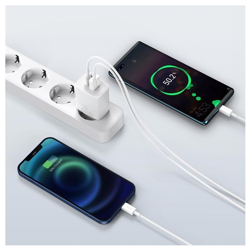 - Baseus Compact USB-C & USB-A snabb strömadapter med EU-kontakt