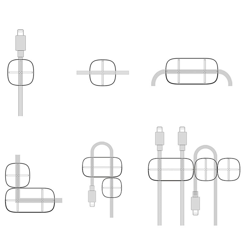 Setet inkluderar tre organiserare med greppvänliga dynor som passar för användning på de flesta material. Den flexibla design låter dig använda dem för kablar i olika former och storlekar.