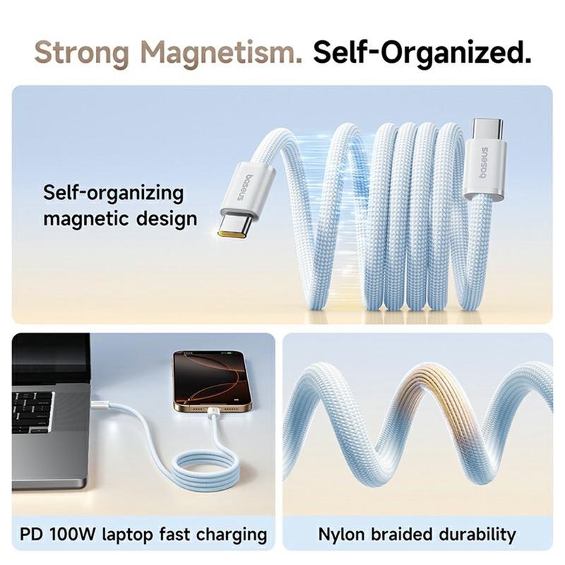 Uppgradera din laddningsrutin med BASEUS Dynamic 4 Pro Type-C till Type-C-kabel. Med en smart magnetisk självorganiserande design och 100 W strömförsörjning ger den här kabeln snabb, problemfri laddning för bärbara datorer, smartphones och mycket mer. Den slitstarka nylonflätade konstruktionen garanterar långvarig tillförlitlighet, medan den kompakta längden på 1meter är perfekt för både resor och vardagsbruk.