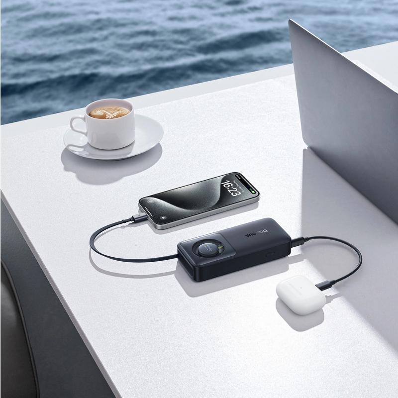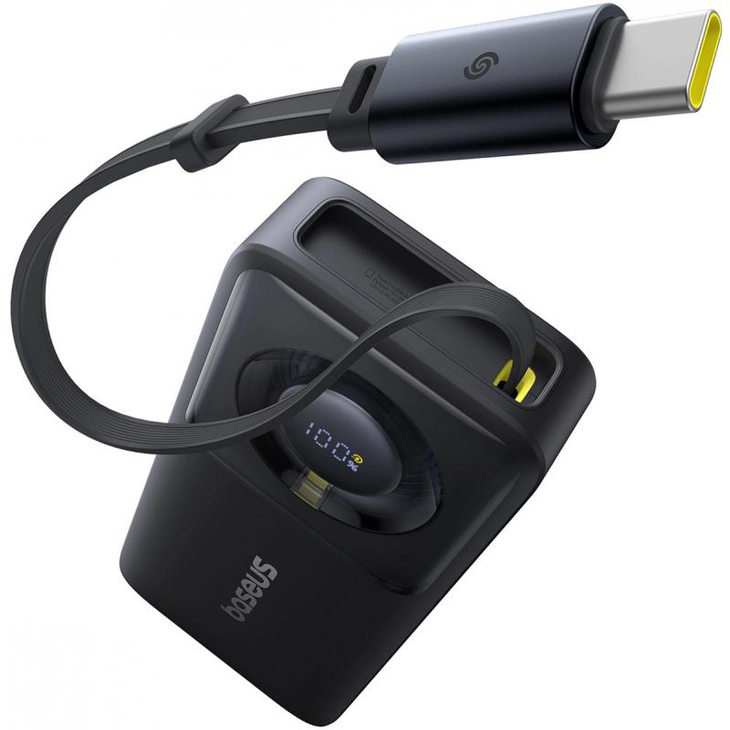 Baseus Free2Pull 10000mAh Powerbank med USB-C-kabel - 30W PD snabbladdning med 70 cm utdragbar USB-C-kabel och utgång för två enheter