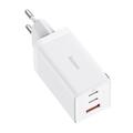 Baseus GaN5 Pro 2xUSB-C + USB-nätladdare, 65W (vit)