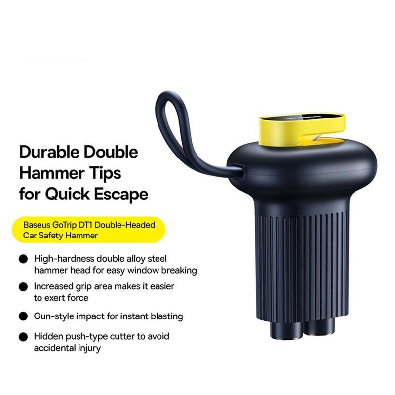 Baseus GoTrip DT1 dubbelhuvad säkerhetshammare för bil med säkerhetsbältesavbitare - nödutrymningsverktyg och fönsterkrossare för fordon