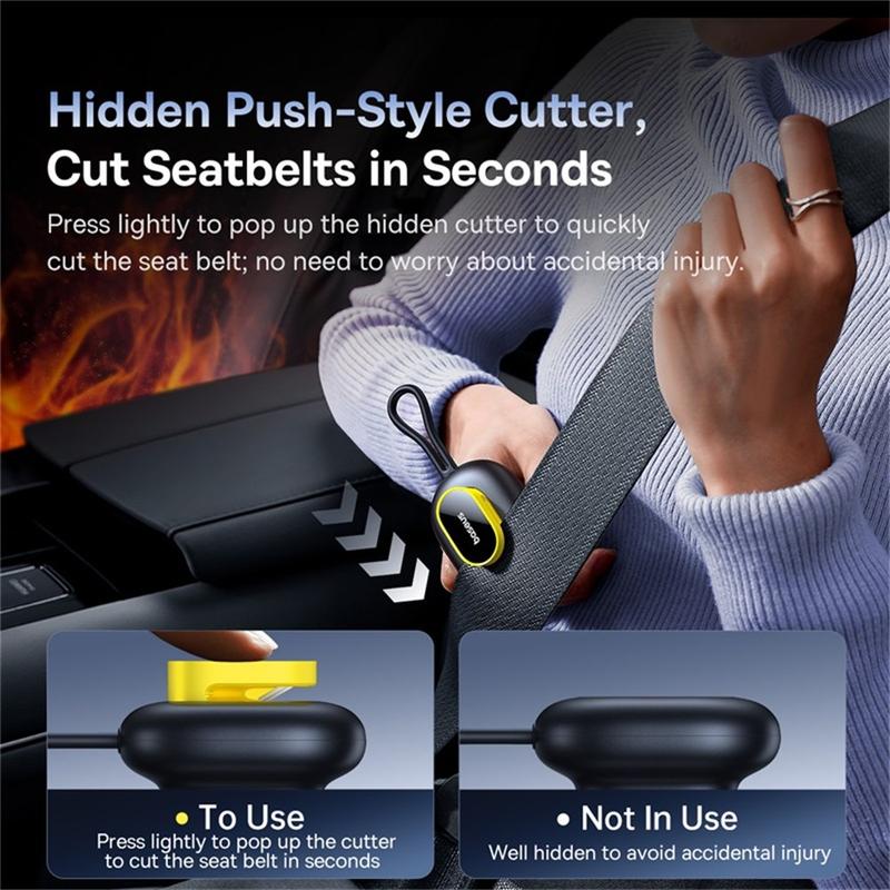 - Integrerad skärare för säkerhetsbälte: Har ett dolt, rakbladsvass blad som kan skära igenom säkerhetsbälten utan ansträngning, vilket säkerställer att du snabbt kan befria dig själv eller passagerarna om säkerhetsbältena fastnar.