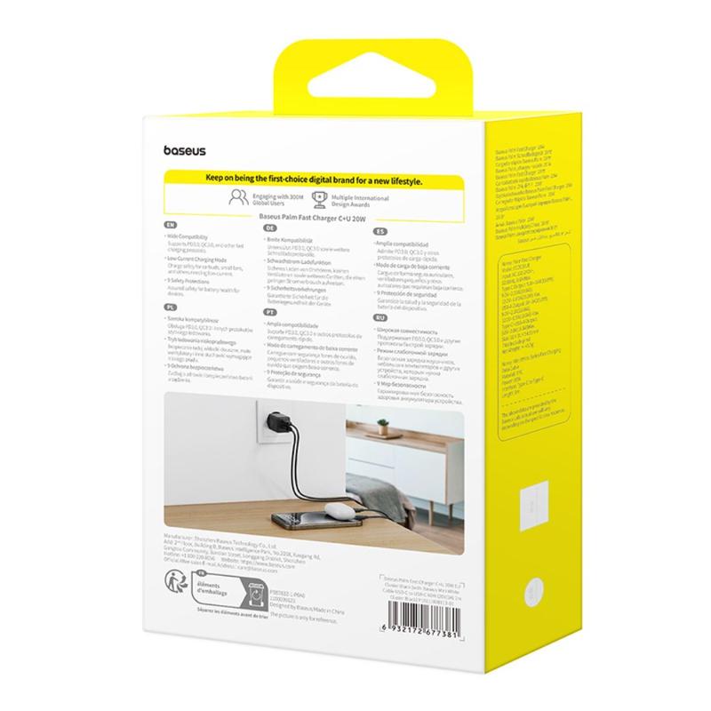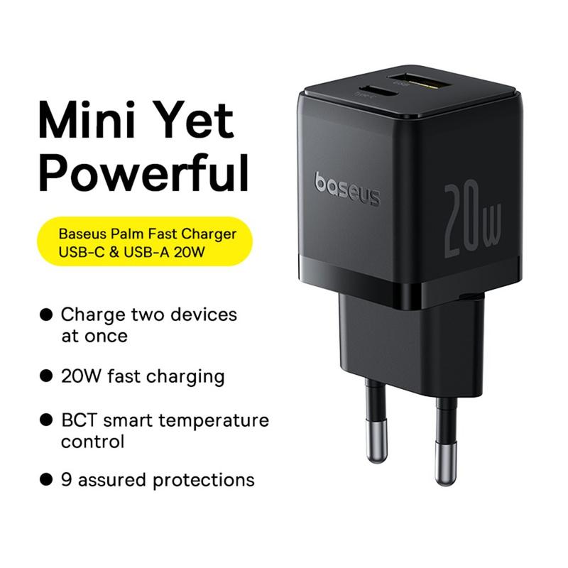 Förändra din laddningsrutin med BASEUS Palm Dual-Port 20W Fast Charger och upplev säker, snabb strömförsörjning för alla dina enheter.