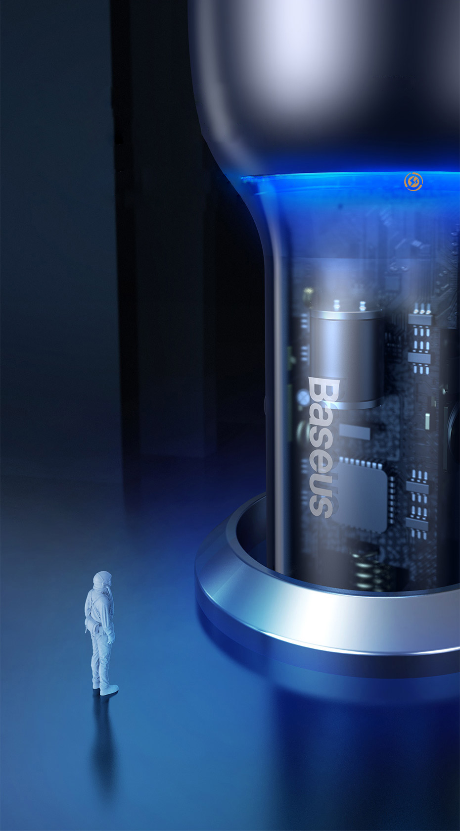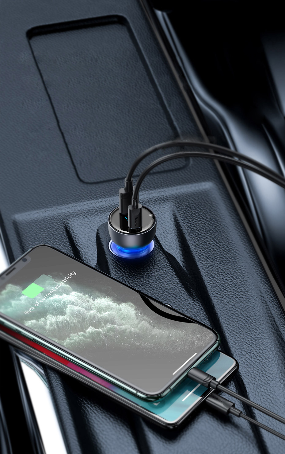 Enheter med ett äldre gränssnitt laddar ungefär 20% av batteriet på 30 minuter, medan en Baseus-enhet kan ladda upp till 60% av batteriet på samma gång. Detta gör att du kan använda applikationer som navigering och märkbart ladda din telefon samtidigt.
