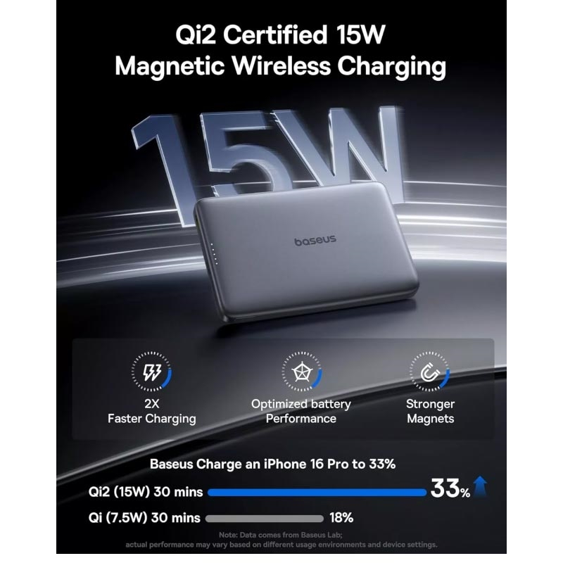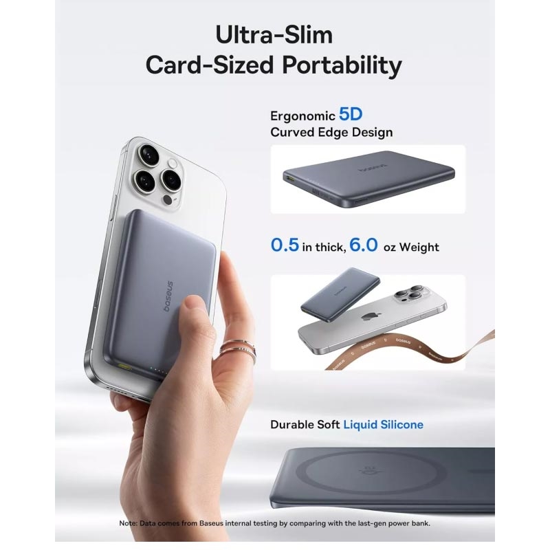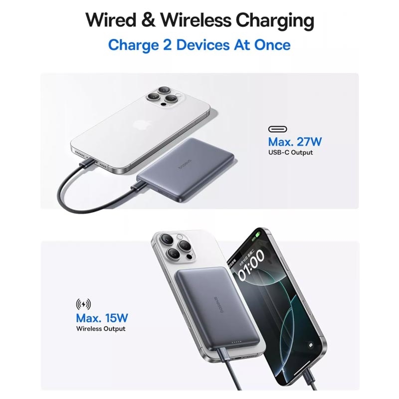 Baseus PicoGo AM41 trådlös powerbank är utvecklad för snabb, pålitlig och kabelfri laddning var du än befinner dig. Med en kapacitet på 10000mAh kan den ladda din telefon, hörlurar och andra enheter flera gånger utan att du behöver leta efter ett eluttag. Qi2 magnetisk trådlös laddning säkerställer en stabil anslutning och effektiv energiöverföring, medan USB-C snabbladdning upp till 27W ger snabb ström när du behöver det mest. Den smala och lätta designen gör den lätt att bära i fickan eller väskan för daglig användning, resor eller arbete.