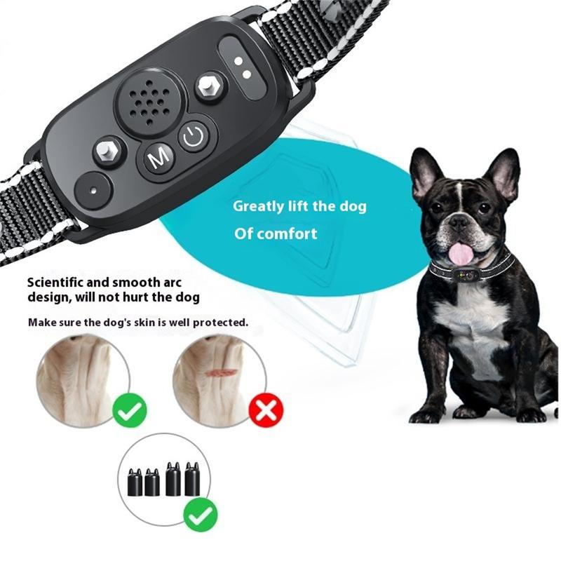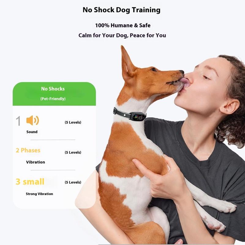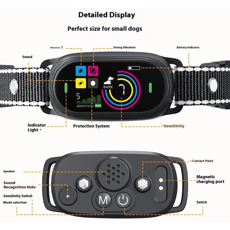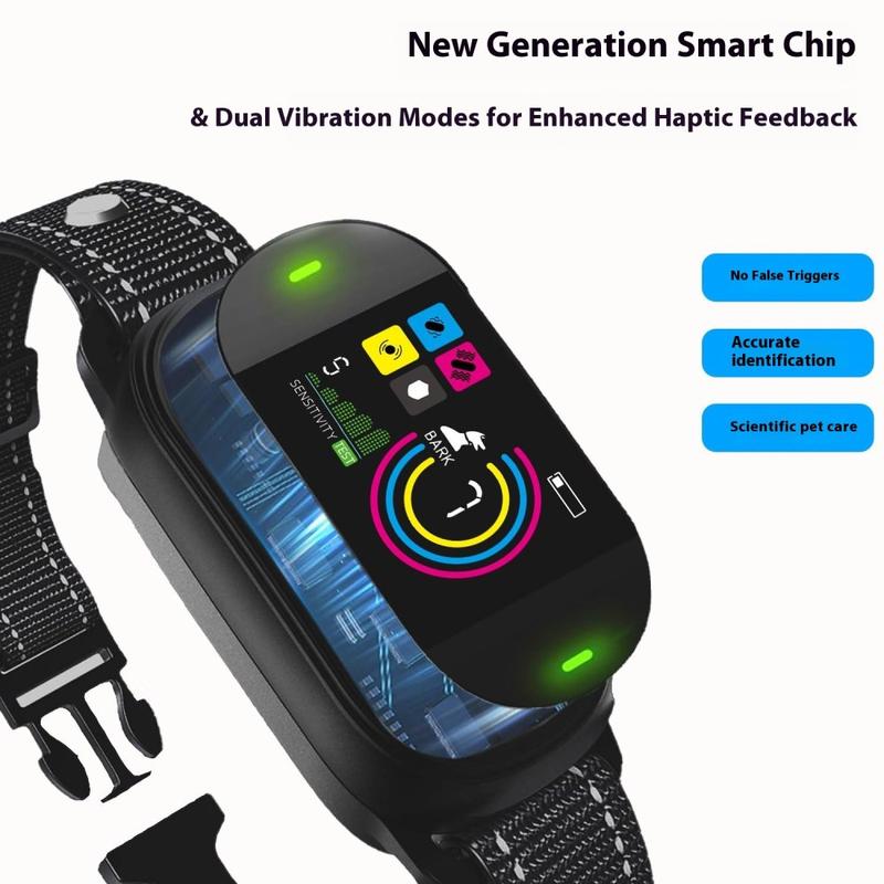 Halsbandet är byggt med ett smart system för röstigenkänning av hundar och skiljer mellan din hunds skällande och andra ljud för att undvika falska utlösningar. Ett automatiskt viloläge säkerställer din hunds komfort och förhindrar överstimulering under träningen.