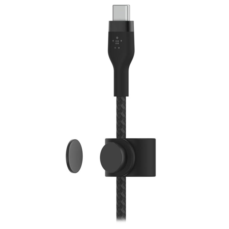 Belkin BoostCharge Pro Flex är en superflexibel och mycket hållbar kabel för bekväm laddning av alla dina USB-C-enheter. Den stöder Power Delivery snabbladdningsprotokoll med 60W maximal utgångseffekt för supersnabb laddning. Denna silikonkabel har ett nylonflätat yttre lager och förstärkt aluminiumhölje för kontakterna, så den är trasselfri och slitstark. Dessutom kommer den också med en magnetisk kabelrem så du kan fästa eller förvara denna laddningskabel på ett snabbare och snyggare sätt.
