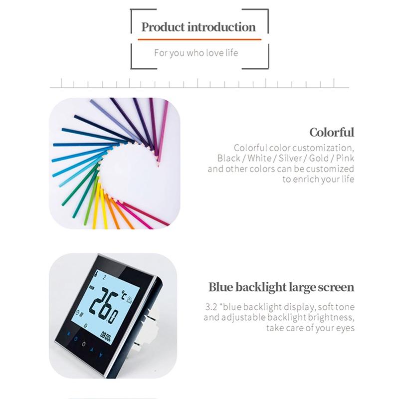 BHT-1000GB smart termostat för elektrisk golvvärme med pekskärm och LCD-display