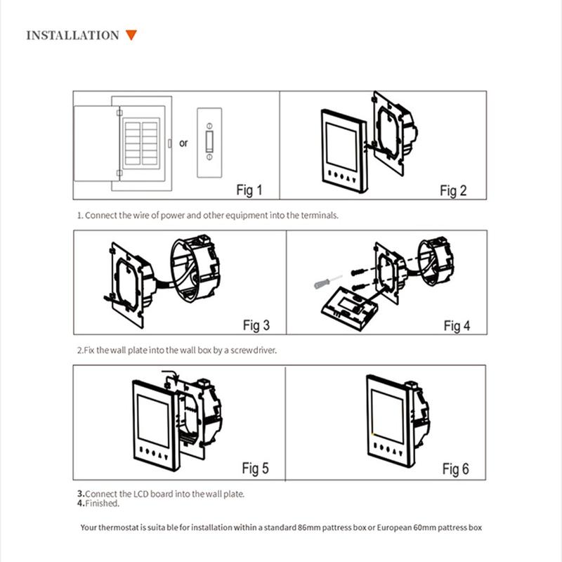 BHT-1000GB är utformad för installation i en standardinbyggnadsdosa på 86 x 86 mm eller en konventionell europeisk väggdosa, vilket gör den enkel att integrera i många befintliga installationer. Dess breda spänningskompatibilitet ger också installationsflexibilitet, vilket gör att den kan användas i ett brett spektrum av miljöer där elektrisk golvvärme används.