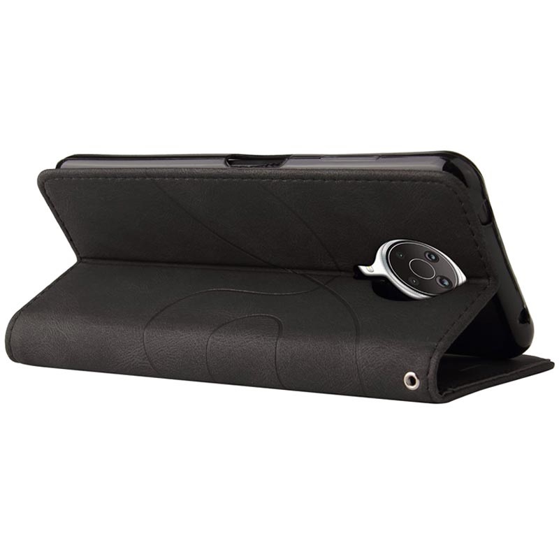En av huvudsakliga egenskaperna hos detta fodral till Nokia G10, G20 är mixen av elegans och funktionalitet. Den tvåfärgade designen ger detta fodral en unik look och ger användaren många fördelar, så som kortfickor, fack för kontanter och stativ i horisontellt läge.