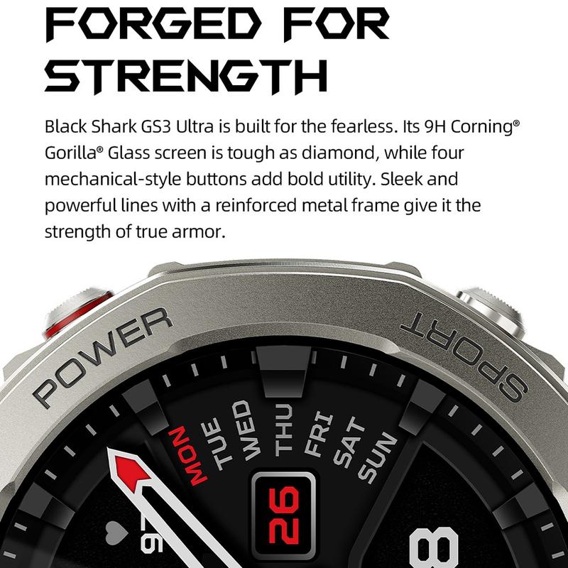 Upplev prestanda och stil på nästa nivå med BLACK SHARK GS3 Ultra, en avancerad smartklocka som är byggd för aktiva användare och teknikentusiaster. Med en levande AMOLED-skärm, kraftfull batteritid, avancerad hälsospårning och över 160 sportlägen är den utformad för att hålla jämna steg med din livsstil - oavsett om du är på gymmet, utomhus eller på språng.