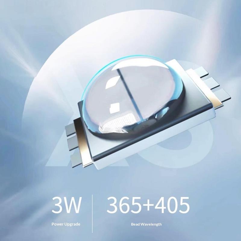 - LED-teknik med dubbla våglängder: 365+405 nm