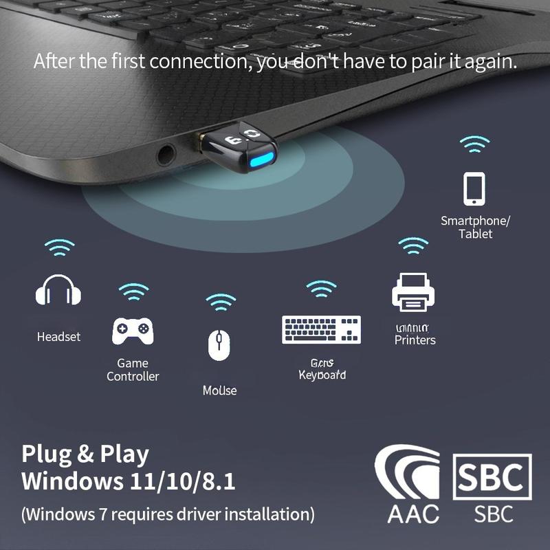 Bluetooth 6.0 USB-adapter / trådlös ljudmottagare och sändare för Windows 8.1, 10, 11