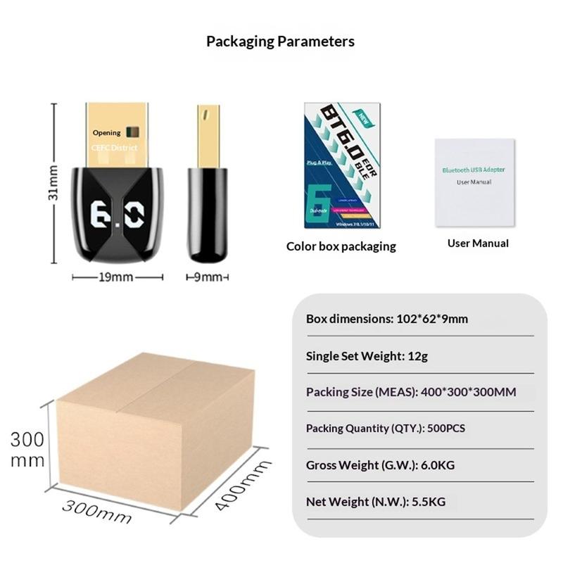 Denna Bluetooth 6.0 USB-adapter ger din dator snabb och stabil trådlös anslutning. Den är utformad för smidig ljuduppspelning, responsiva inmatningsenheter och daglig användning av flera enheter. Anslut den bara och njut av en pålitlig trådlös upplevelse utan komplicerad installation.