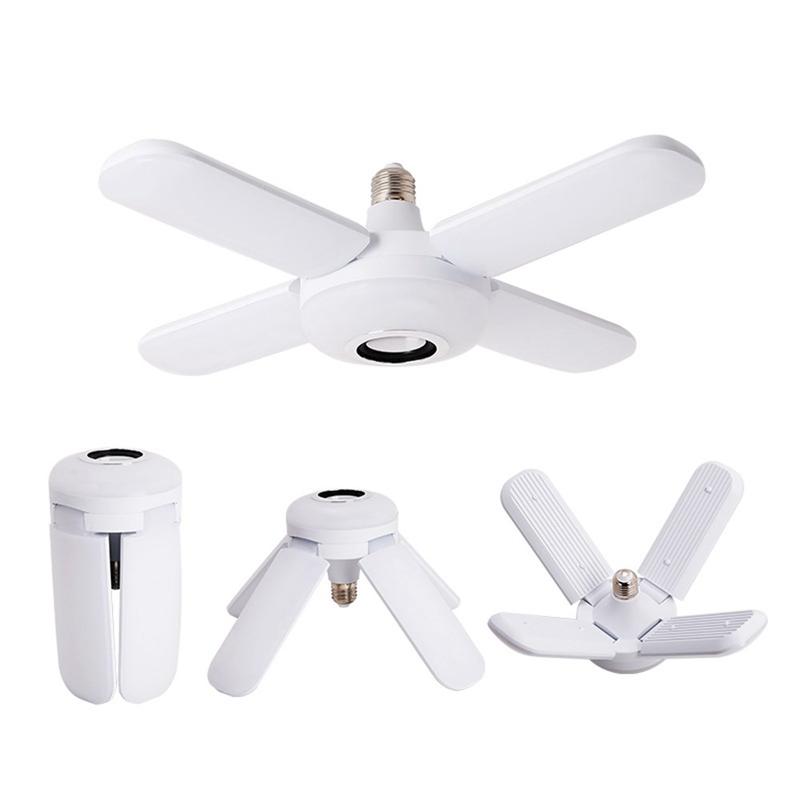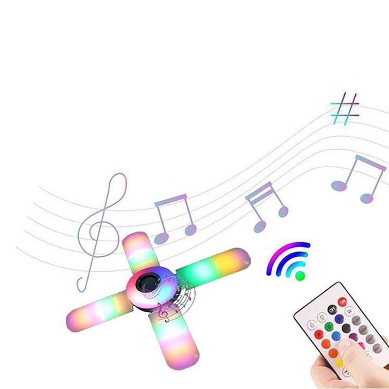 E27 Bluetooth musik taklampa - 4-löv vikbar RGB färgskiftande ljus med högtalare