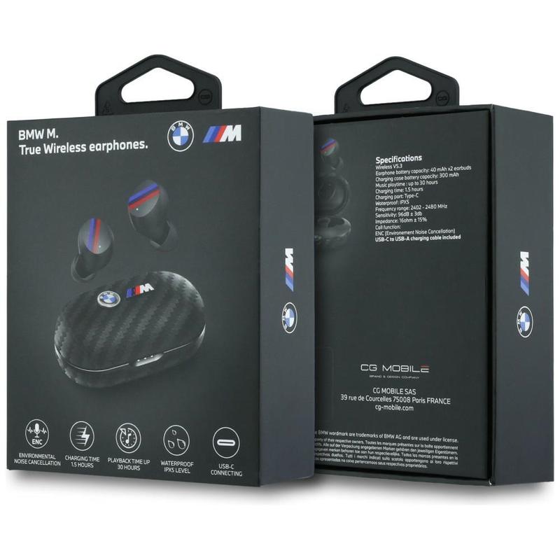 BMW M Carbon ENC True Wireless Hörlurar - Bluetooth 5.3, IPX5, upp till 30 timmars speltid, USB-C-fodral
