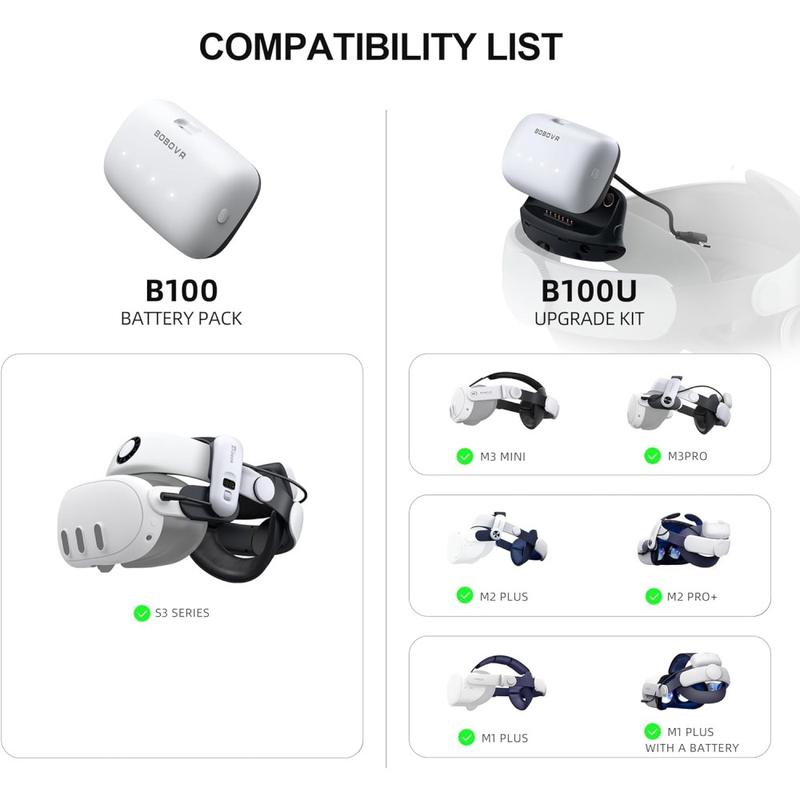 Obs: Endast kompatibel med BOBOVR S3 Pro Head Strap och är inte kompatibel med BOBOVR M2/M3-seriens huvudband. Köp inte av misstag (Battericellen är 10000mAh/3,65V eller 5000mAh/7,3V. För att förlänga livslängden har systemet lagrat 4% av strömmen. Den faktiska tillgängliga kapaciteten är 4800mAh*7,3V=35,04Wh).