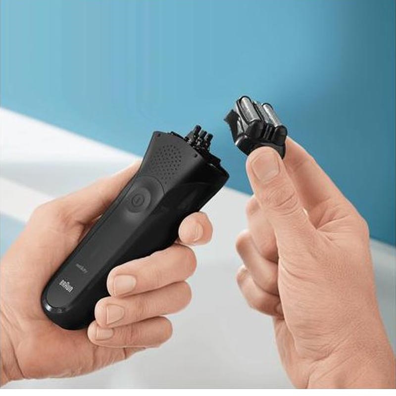 - Trippelverkande skärsystem: Dubbla folier och en integrerad mellantrimmer arbetar synkroniserat och fångar korta och långa hårstrån i varje drag