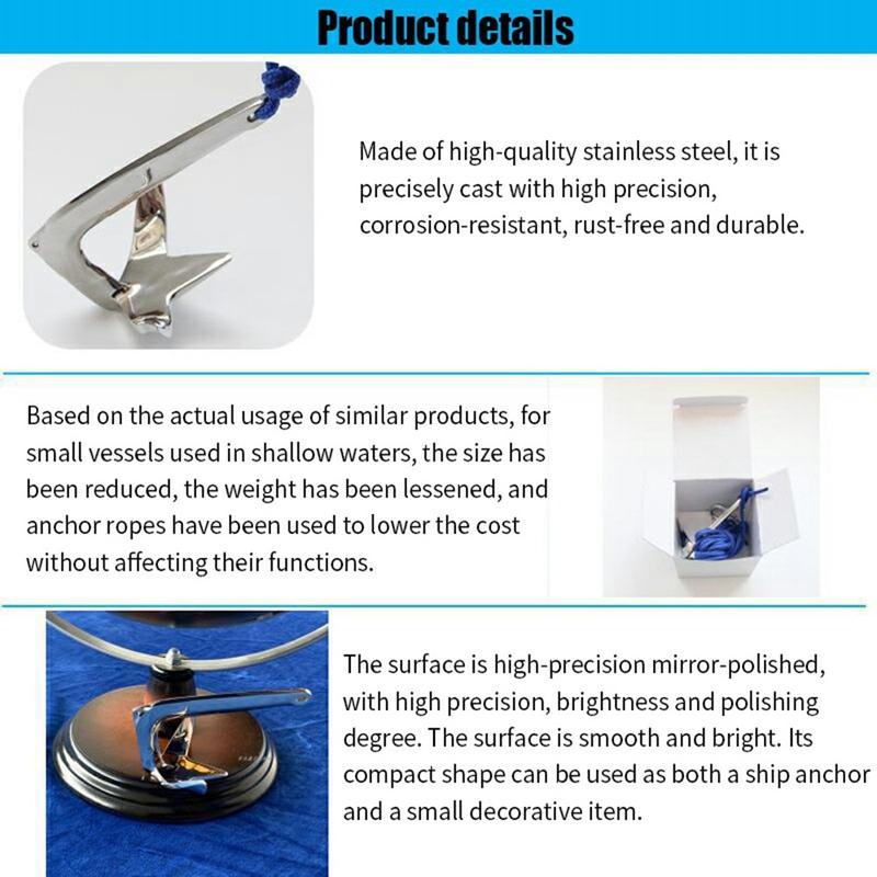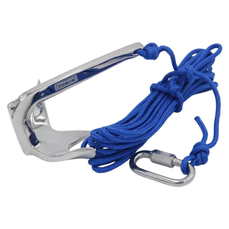 Om du vill ha ett kompakt, rostbeständigt ankare som du alltid kan ha med dig är det här kitet ett smart val. Vikten på 0,2 kg gör det enkelt att transportera, och det medföljande repet + fjäderkroken innebär att du har en färdig installation för snabba stopp och lätta ankringsbehov.
