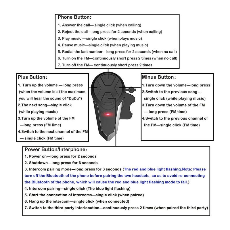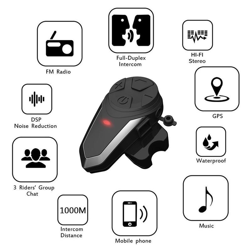 BT-S3 IPX6 Bluetooth-intercom för motorcykelhjälm - 1000 meters räckvidd, FM-radio och brusreducerande headset