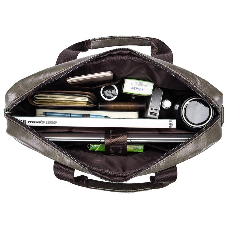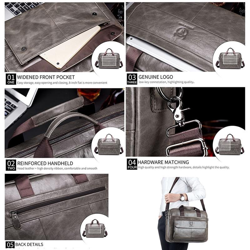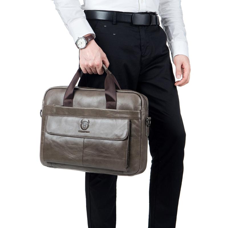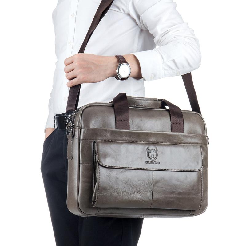 Bullcaptain 046 Laptop- och crossbodyväska i läder för män - Cowhide i översta lagret