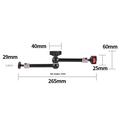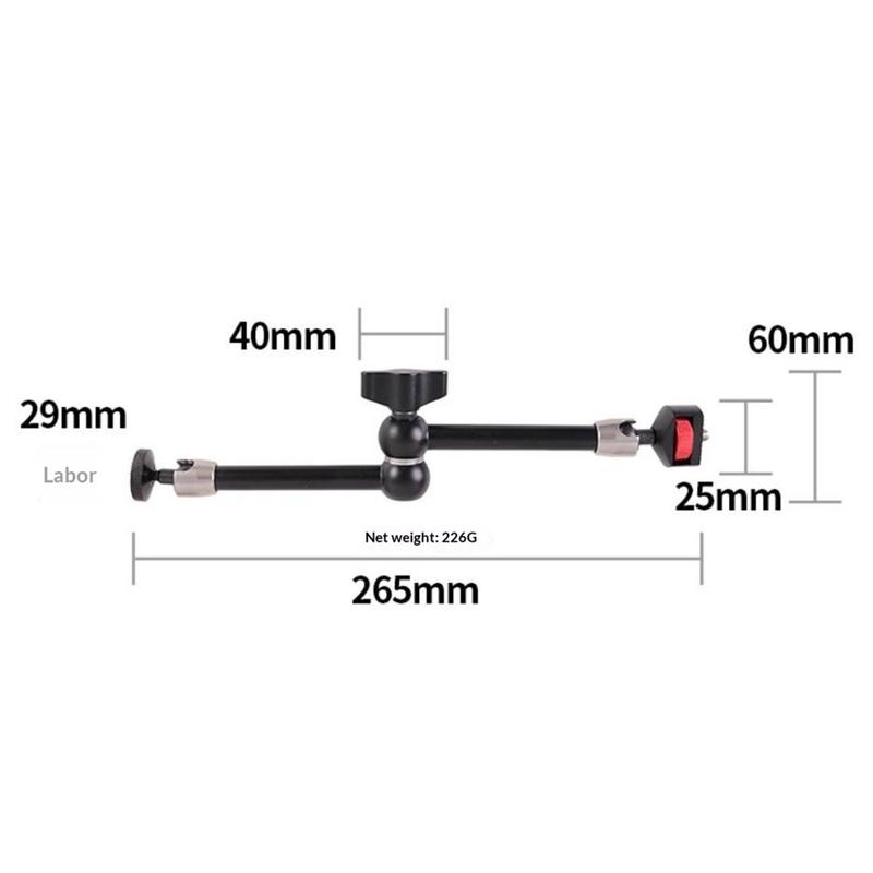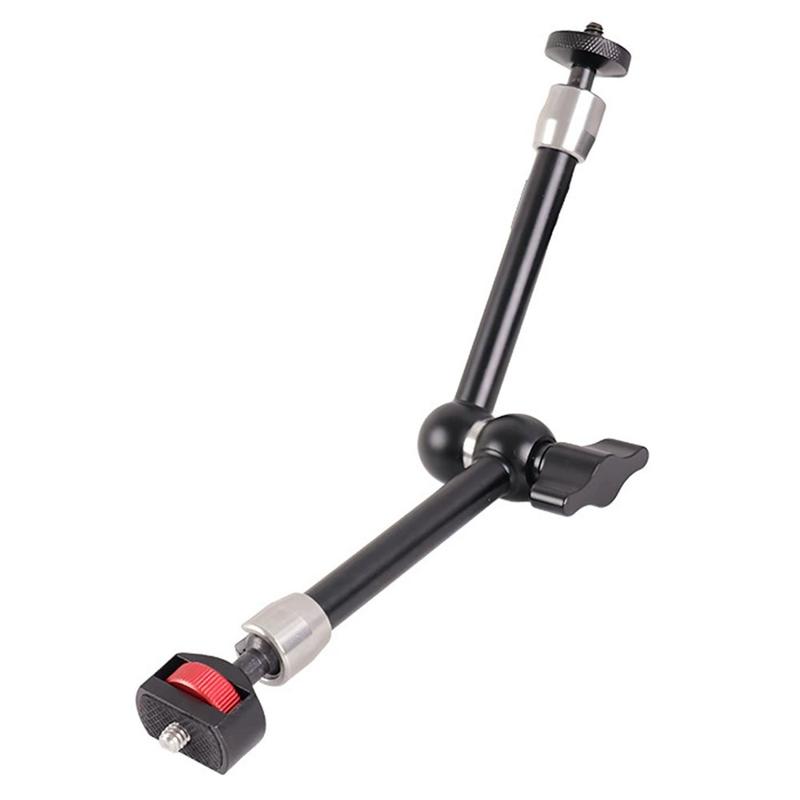 Den dubbla kulledskonstruktionen möjliggör 360°-justering för mer precis positionering, medan standardgängan på 1/4" i båda ändarna gör den kompatibel med ett brett utbud av utrustning. Armen är tillverkad av aluminiumlegering och erbjuder en solid och hållbar konstruktion samtidigt som den är tillräckligt lätt för att vara enkel att bära och använda dagligen.