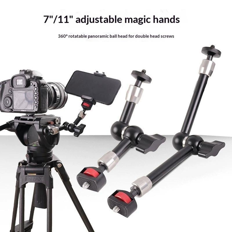 C119 11" Magic Arm-fäste - justerbart dubbelkulledshuvud med 1/4"-gänga för kamera, mobil, mikrofon och stativ