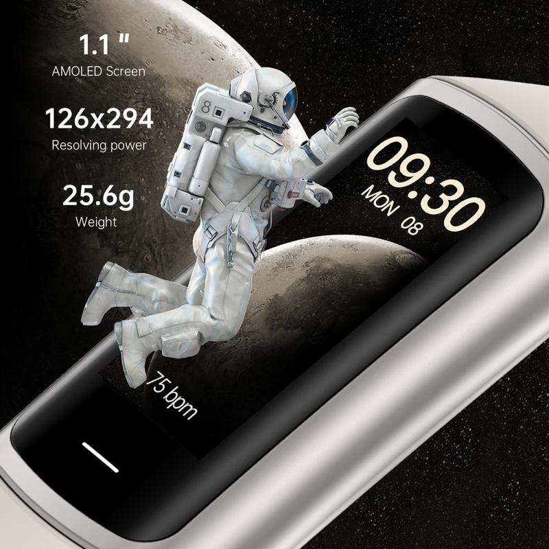Visning av meddelandeinspelning: Användarna kan visa meddelanden direkt på den 1.1 tum stora AMOLED-skärmen med en upplösning på 126*294, så att de aldrig missar viktiga uppdateringar