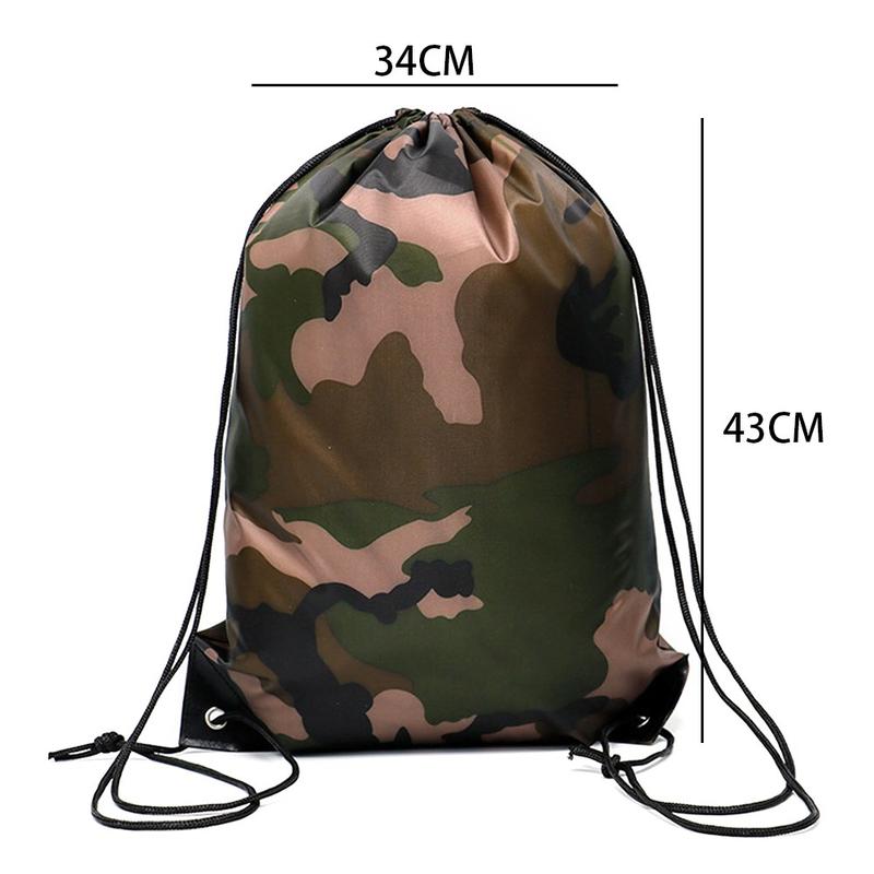 Camouflage ryggsäck med dragsko - 210D polyester sport- och gympapåse för camping, vandring och resor utomhus