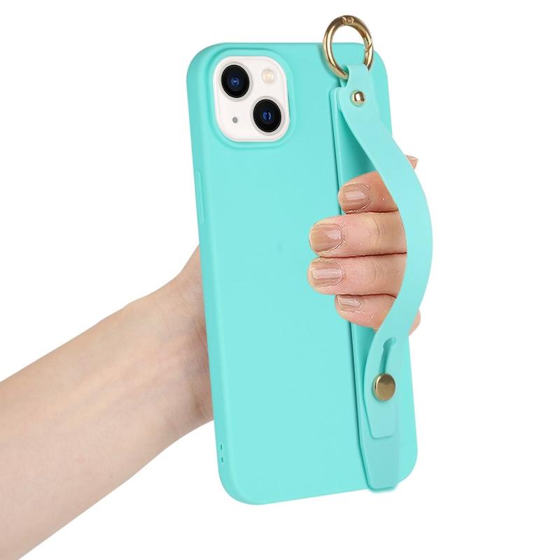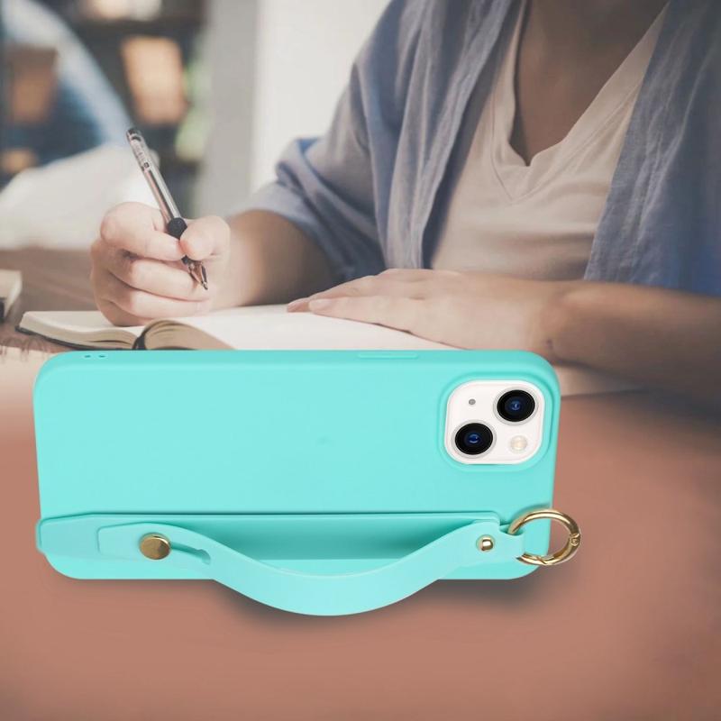 För iPhone 14 Plus Candy Color Phone TPU-fodral Anti-dropp Anti-repfodral med handrem Kickstand