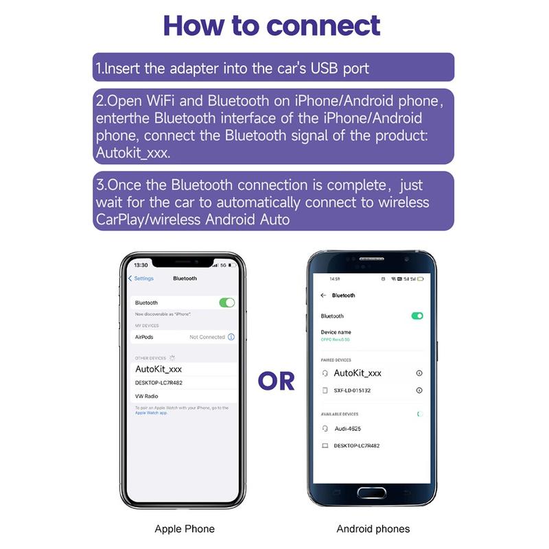 Den kan konvertera trådbunden AN auto till trådlös AN auto, konvertera trådbunden CarPlay till trådlös CarPlay.