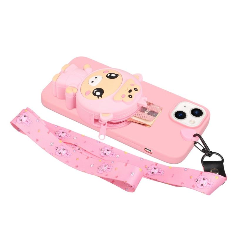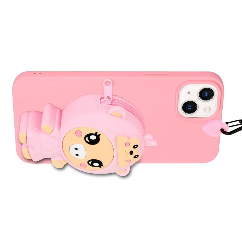 För iPhone 14 Plus Anti-Fall telefonfodral Stötsäkert TPU-telefonfodral med silikonficka/linjal med dragkedja